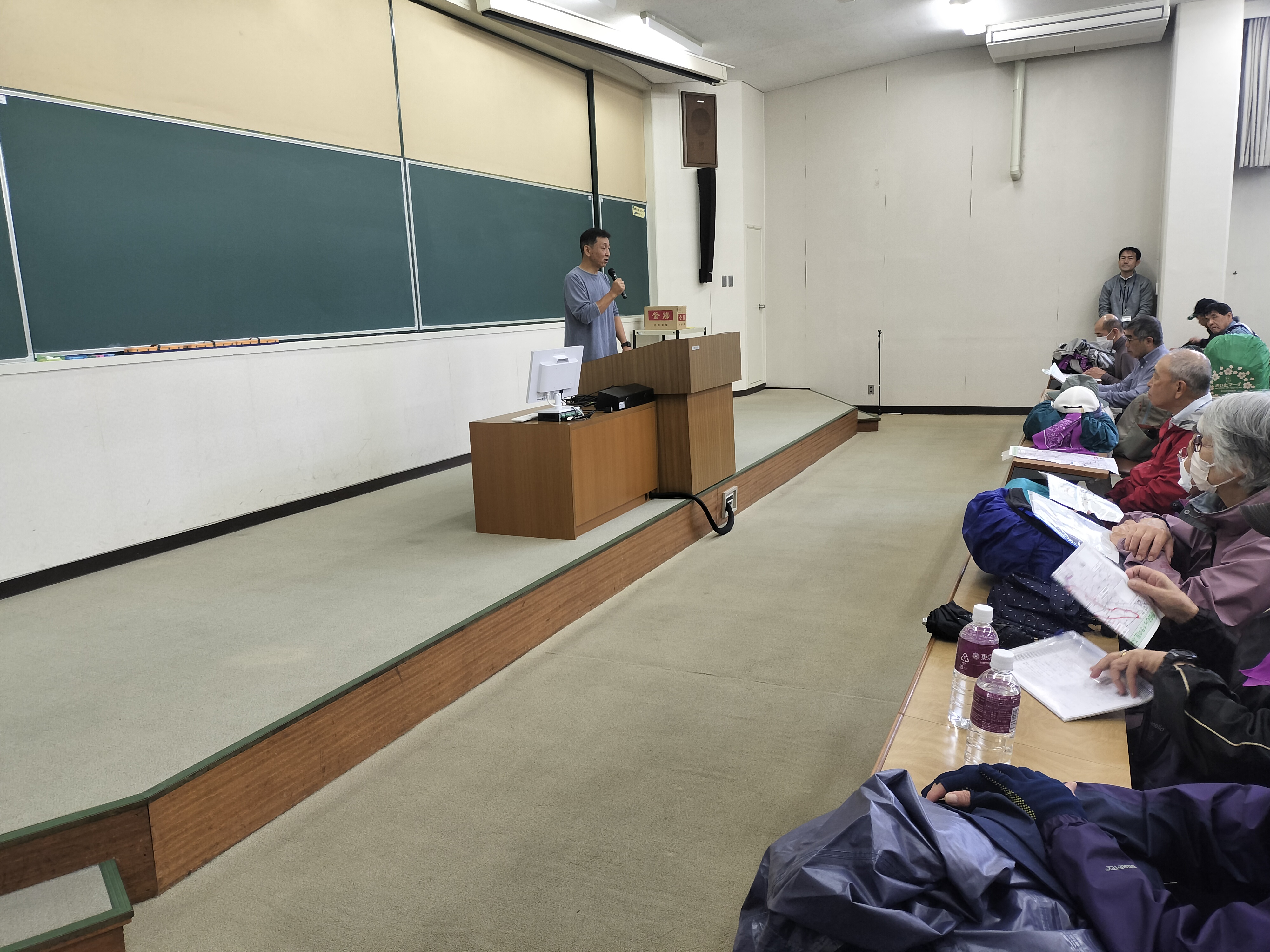 テキストは午前中に「メタボを歩いて改善」、「今、なぜウオー キングか」、午後に「ウオーキングの楽しみ方」の3項目で、それぞれCWAインストラクターとして、伊藤隆之さん、佐々木のぶ子さん、山野井富美子さんが担当して、解りやすく、しかも高度な知識を織り込んだ話をしていただいた。