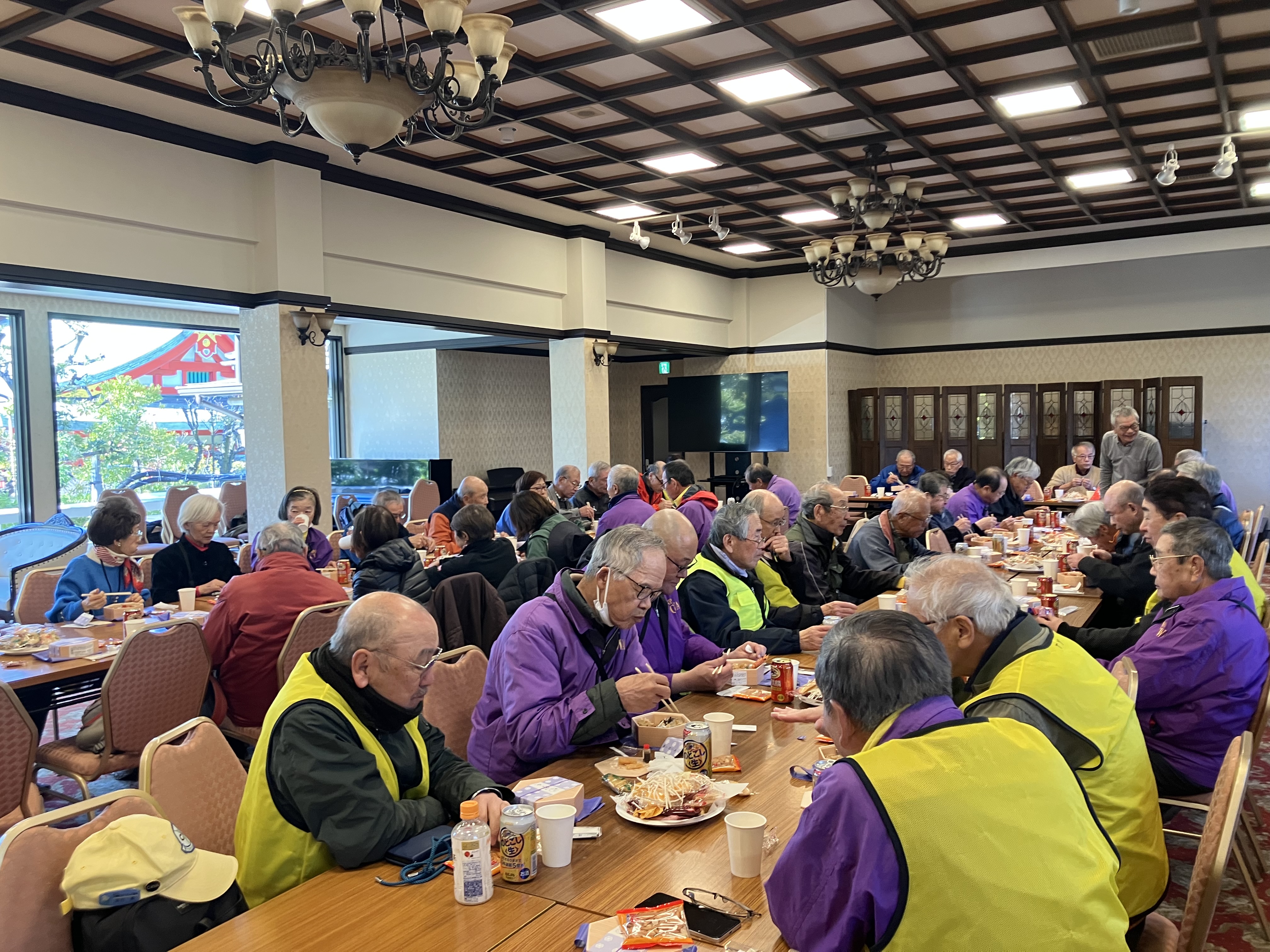 当日は、富岡八幡宮の権宮司様よりお祓いを受け、ウオーキングの無事を祈念いたしました。祝賀会では4日間完歩者の表彰と懇親を深める楽しいひと時となりました。